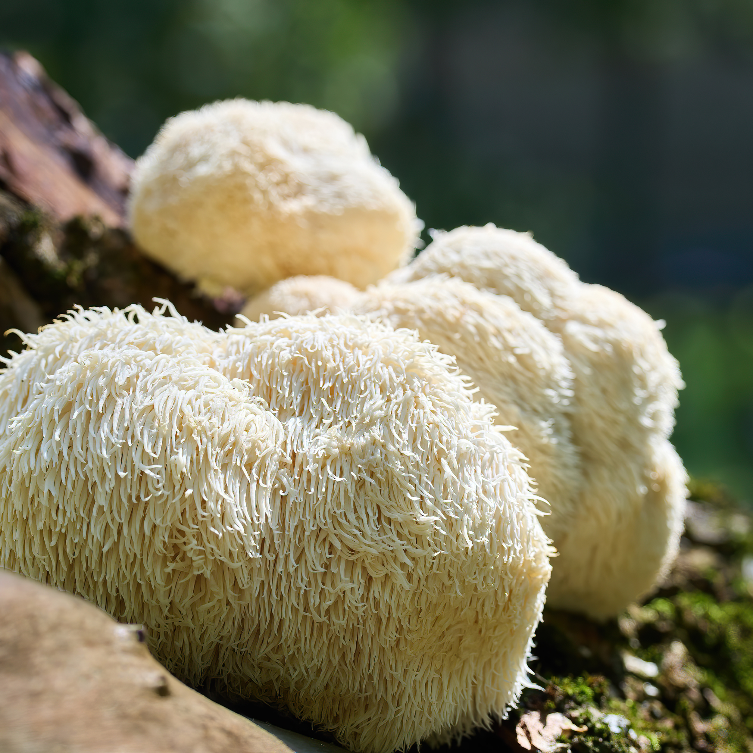 Lion's Mane is a medicinal mushroom containing compounds that stimulate Nerve Growth Factor (NGF), essential for brain health and cognitive function. Research shows Lion's Mane improves focus, mental clarity, reaction time, and mind-muscle connection during training.